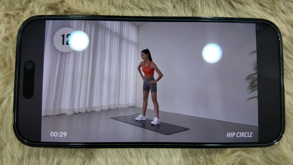 Ginagamit ko iPhone 14 Pro para mag-play ng workout videos at sumabay.